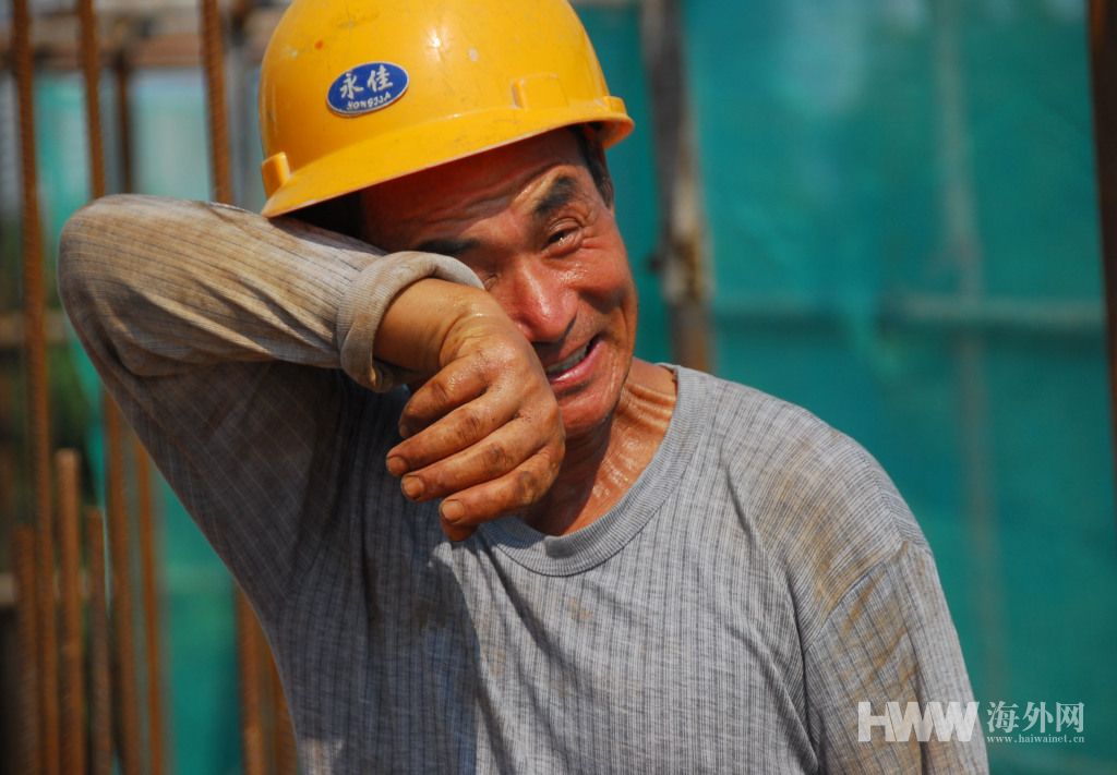 2013年8月5日,江苏淮安市,一施工地上的工人。(供图:澎湃影像)