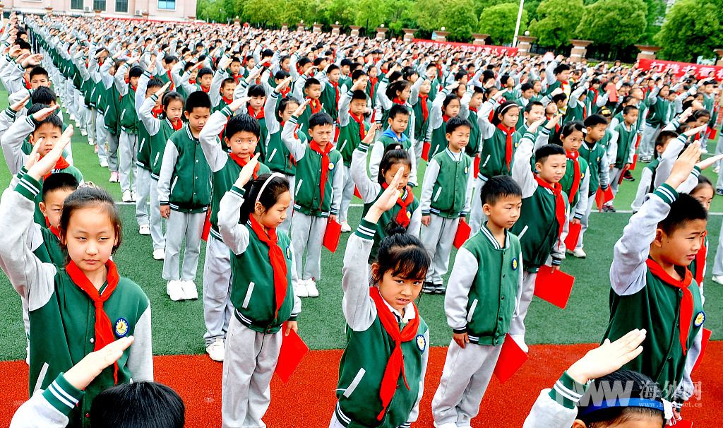 4月26日,江西省德兴市银城第二小学2000余名学童排着整齐的队伍,齐声诵读《少年中国说》。当天,该校举办了“献礼中国共产党建党100周年暨第十四届读书节”活动,全校2000余名学童排着整齐的队伍,齐声诵读我国近代思想家、政治家和教育家梁启超散文《少年中国说》,旨在激励全校学生从小励志学习、热爱祖国的思乡情怀,同时为该校献礼中国共产党建党100周年暨第十四届校园读书节拉开序幕。(供图:视觉中国)
