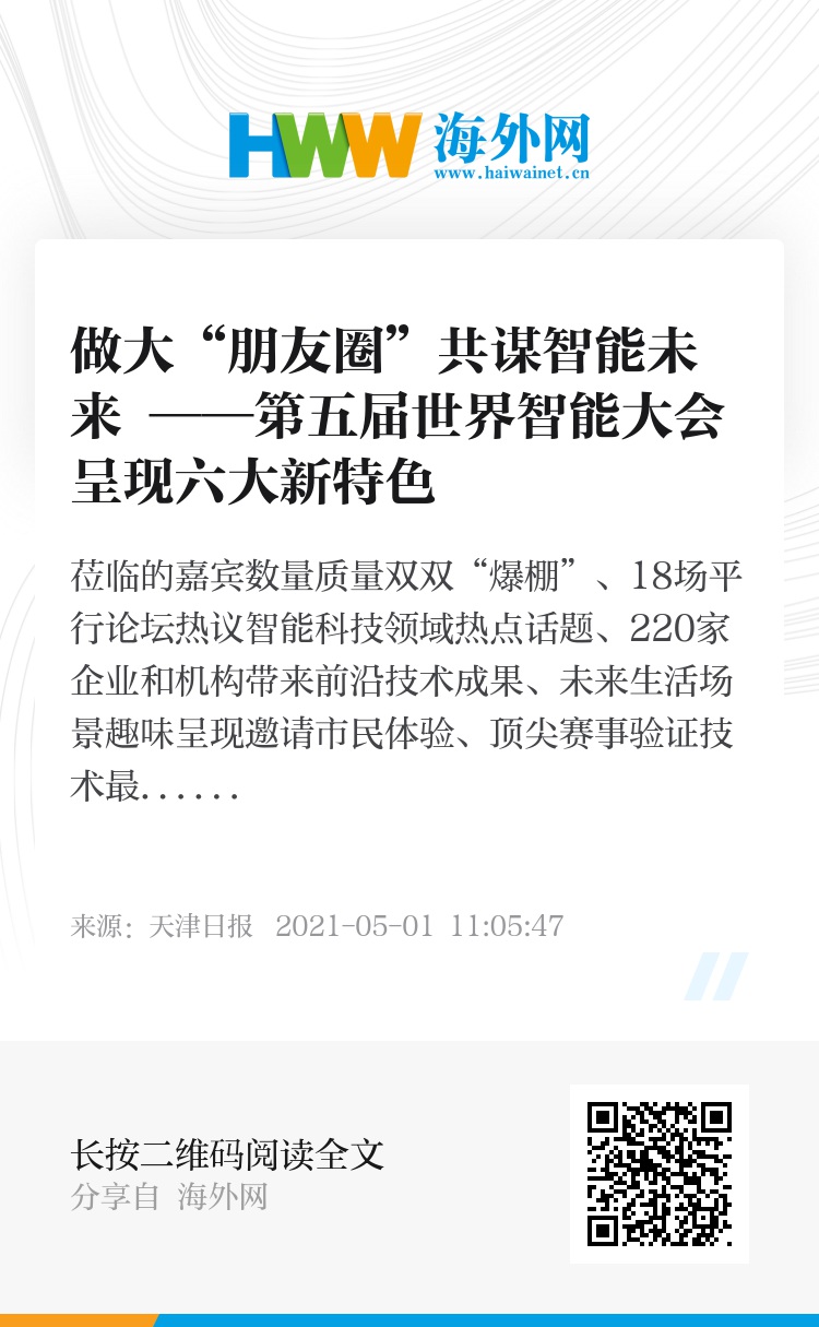 莅临的嘉宾数量质量双双“爆棚”、18场平行论坛热议智能科技领域热点话题、220家企业和机构带来前沿技术成果、未来生活场景趣味呈现邀请市民体验、顶尖赛事验证技术最前沿、以会兴业做大天津在全球的“朋友圈”……4月29日在北京举行的第五届世界智能大会新闻发布会向外界透露了本届大会具有的六大新特色,诚挚邀请四海宾朋聚首五月最美津城。