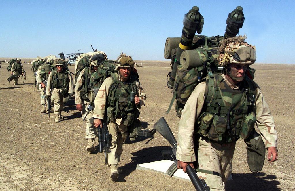2001年11月25日,海军陆战队第15远征部队队员在阿富汗背着肩扛式导弹向安全位置转移。(资料图 视觉中国)