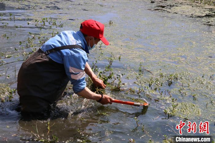 而东白沙河的地势则要复杂得多,时而河道突然变窄,时而河流急转直下,有的河段甚至还有台阶的出现。负责河道打捞的十几名环卫工人只有身穿水裤,下到齐腰深的河水中,徒手打捞。特别近日昆明持续高温,使河道水系缺氧,清理工作异常繁杂,水草疯涨的速度也超乎了人们的想象。