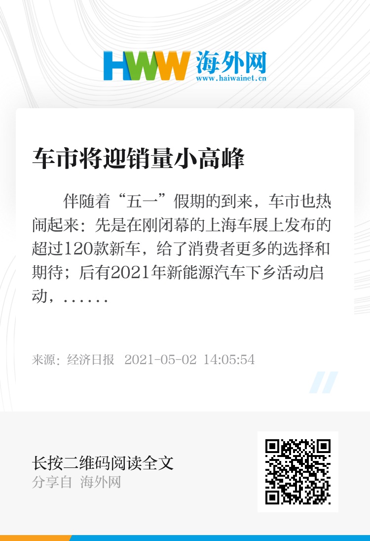 伴随着“五一”假期的到来,车市也热闹起来:先是在刚闭幕的上海车展上发布的超过120款新车,给了消费者更多的选择和期待;后有2021年新能源汽车下乡活动启动,车企主动让利消费者。
