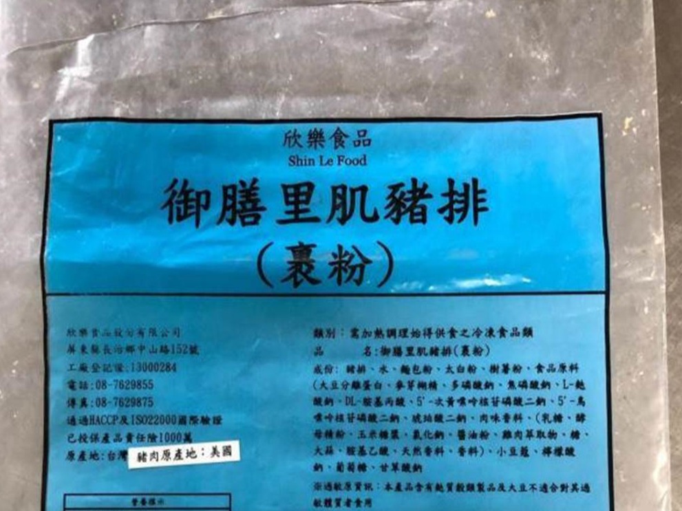 疑为海军官兵的网友3日在脸书粉丝专页“靠北长官”发帖文爆料,称高雄左营副供站供给某家食品厂供军中的“御膳里肌猪排”,产品外箱包装上注明原产地为台湾,内包装原产地却标示美国。有岛内网友怀疑这种猪排是莱猪(含有瘦肉精的美猪),也有网友说美国猪肉原来都跑到军中了。