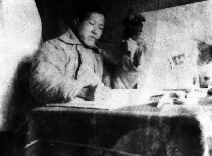 图为冼星海在窑洞里临窗的小炕桌上创作《黄河大合唱》