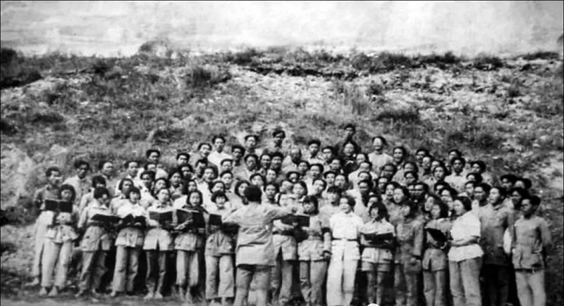 图为冼星海指挥《黄河大合唱》