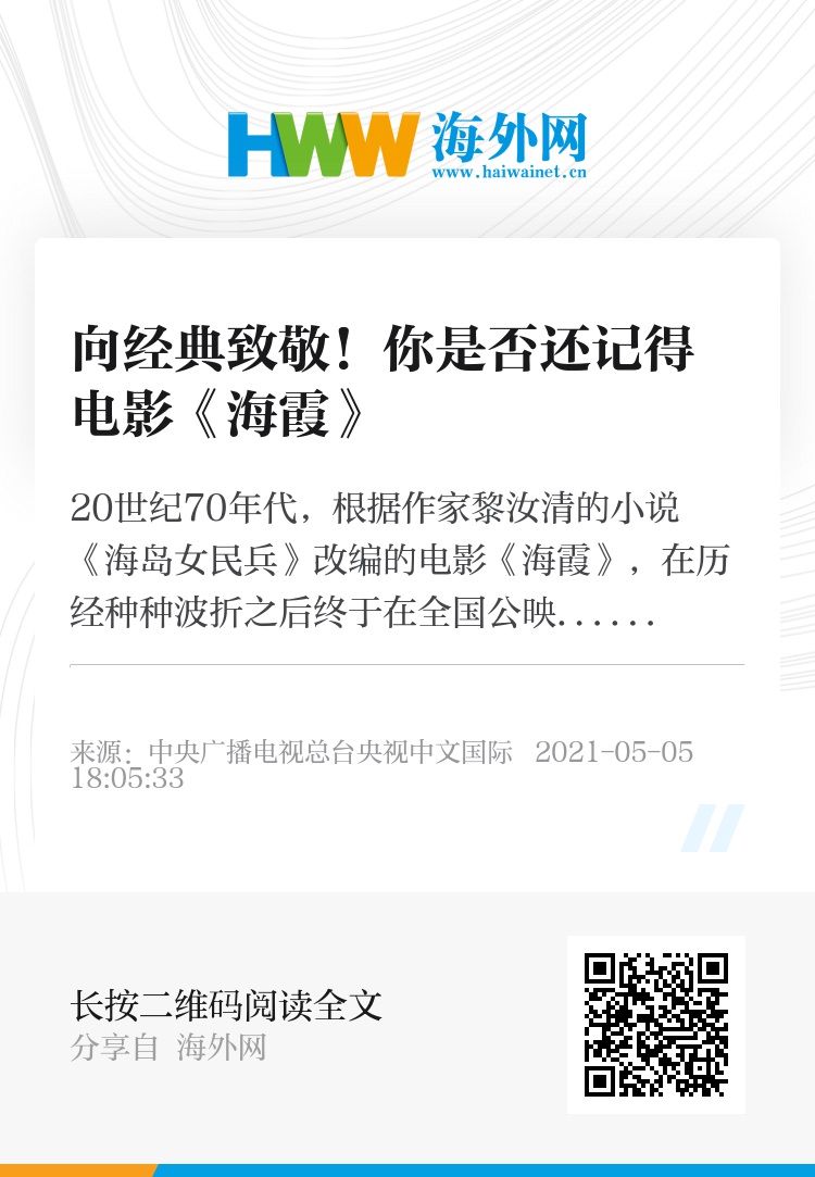 20世纪70年代,根据作家黎汝清的小说《海岛女民兵》改编的电影《海霞》,在历经种种波折之后终于在全国公映。影片女主人公海霞和海岛女民兵们的故事一夜之间传遍大江南北。影片《海霞》从主题到故事、从摄影到音乐等都创造了当时中国电影的艺术高峰。影片中所展现的“爱岛尚武,励志奉献”的“海霞精神”也不断地激励着几代人砥砺前行。