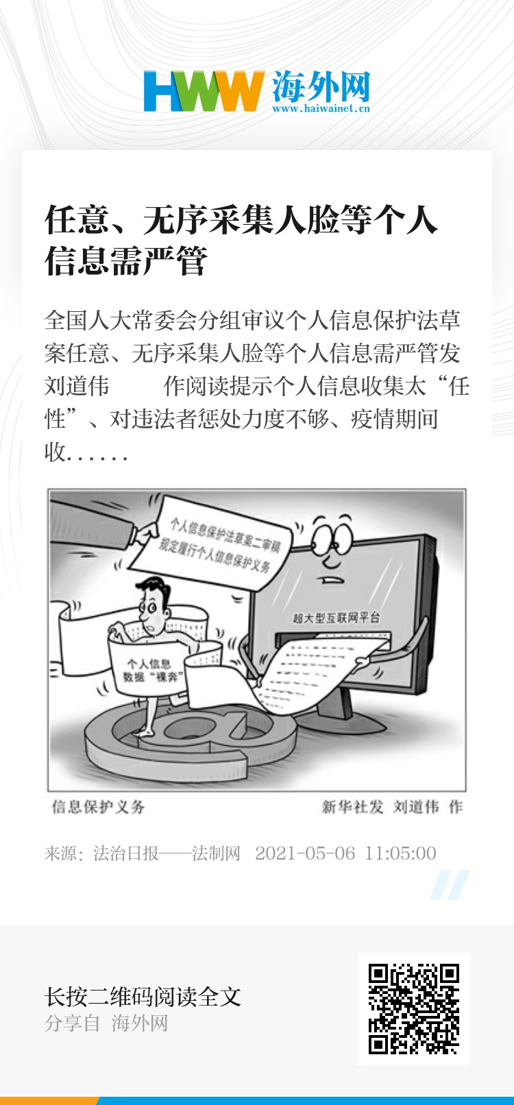 4月27日,十三届全国人大常委会第二十八次会议分组审议个人信息保护法草案二审稿,全国人大常委会组成人员就公众关心的人脸识别、涉疫情个人信息保护以及侵犯个人信息违法犯罪的惩处等问题展开讨论。