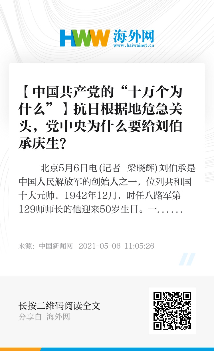中新网北京5月6日电(记者 梁晓辉)刘伯承是中国人民解放军的创始人之一,位列共和国十大元帅。1942年12月,时任八路军第129师师长的他迎来50岁生日。一向反对“讲排场”的中国共产党,为何作出特别指示,坚持要为刘伯承隆重庆生?