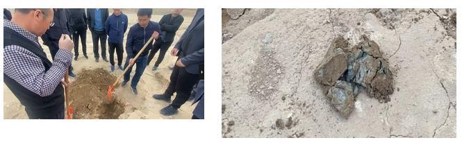 繁峙县羊脑沟选厂主要选铅锌矿和金矿,该企业违规将选矿废渣倾倒在厂区附近的沟里,并覆土伪装。督察组询问时,企业谎称沟里填埋的是建筑垃圾,督察组现场直接挖出选矿废渣。经调查,倾倒的选矿废渣多达52万立方米,占地面积达45亩,其中有耕地1.8亩。