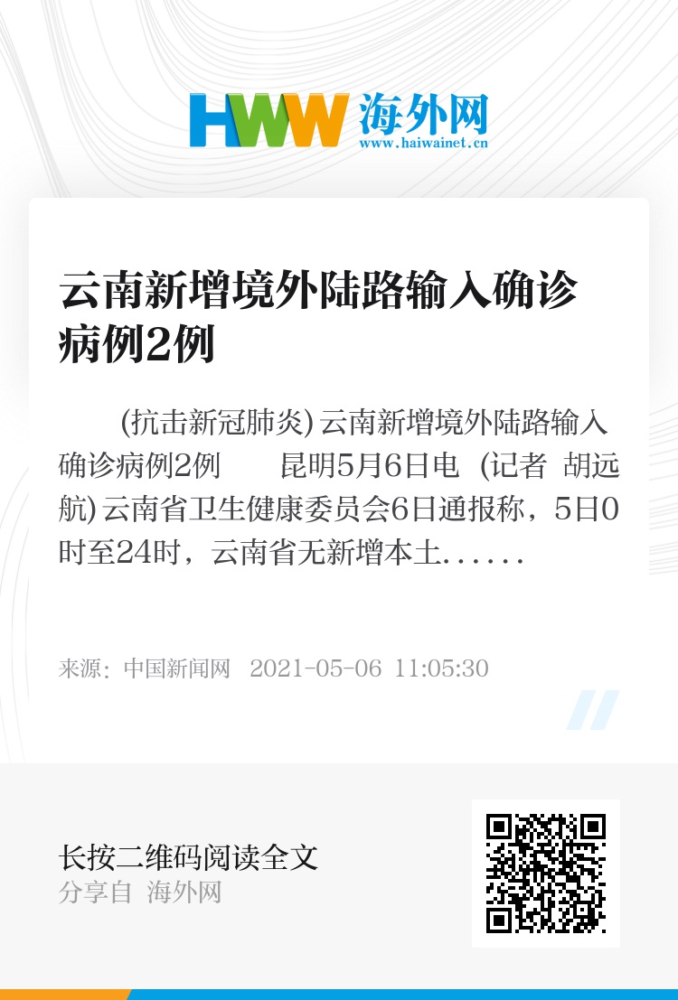 (抗击新冠肺炎)云南新增境外陆路输入确诊病例2例
