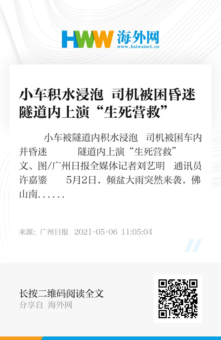 5月2日晚上7时许,佛山南海大沥下着倾盆大雨。不知不觉中,沥水北路一个隧道里的积水已达1米多深。