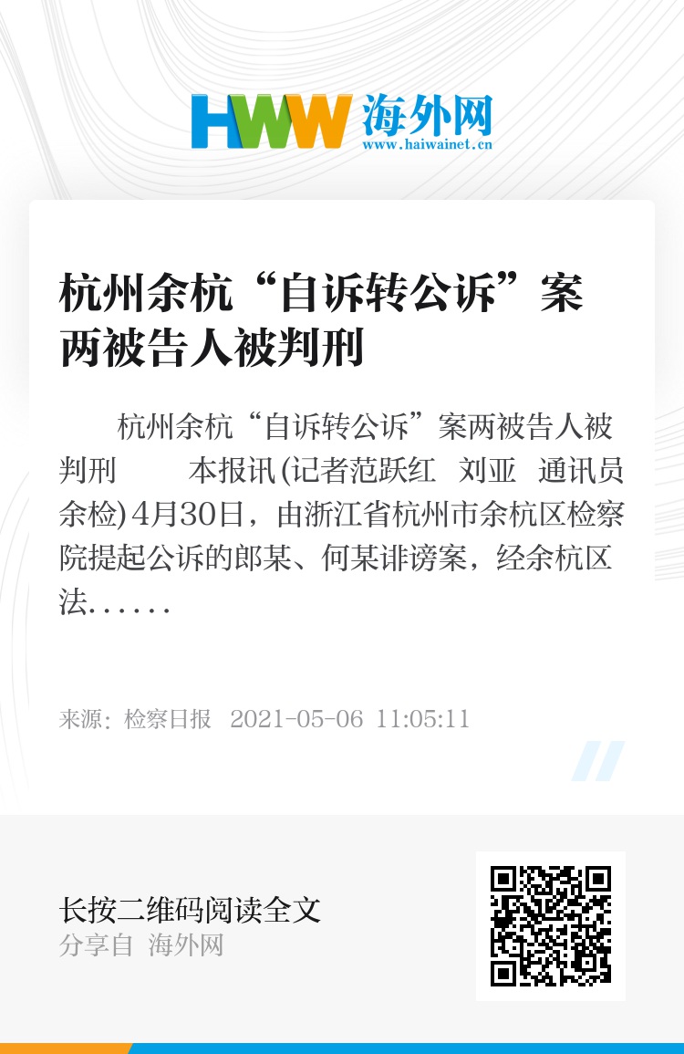 杭州余杭“自诉转公诉”案两被告人被判刑