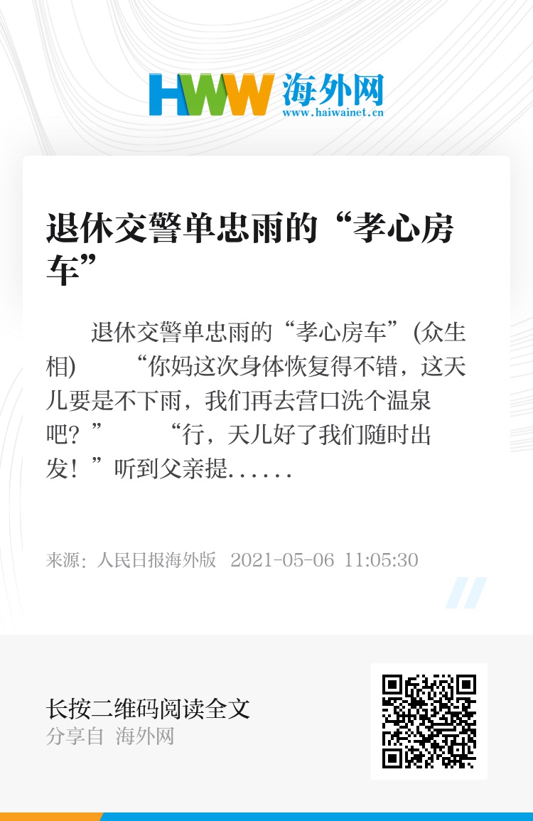 64岁的单忠雨是辽宁沈阳的一名退休交警。退休后,他将一台客车改造成“孝心房车”。4年时间里,带着85岁的父亲单希俭和87岁的母亲付秀英走了24万公里,几乎游遍了全国。
