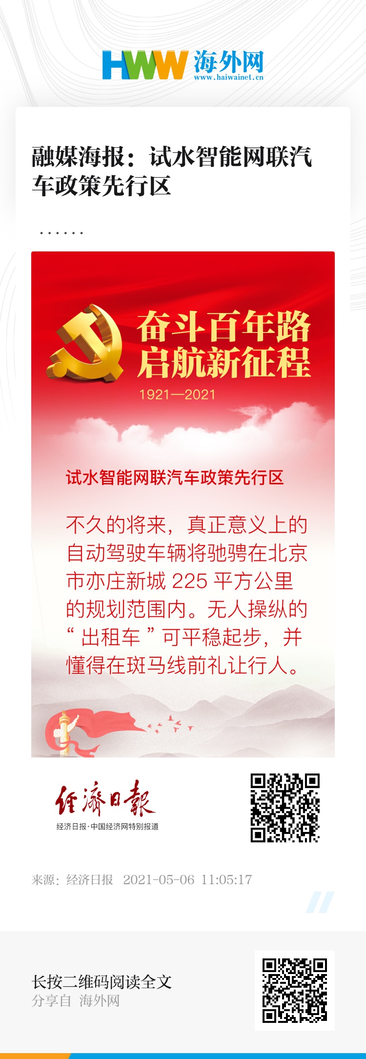 融媒海报:试水智能网联汽车政策先行区