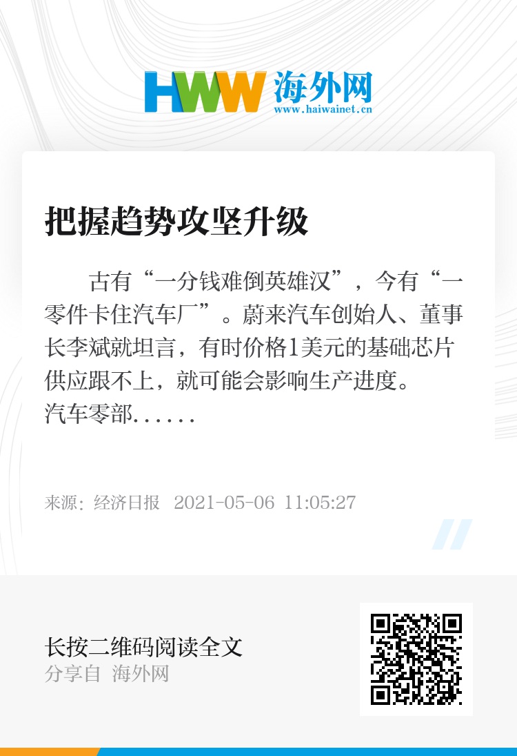 古有“一分钱难倒英雄汉”,今有“一零件卡住汽车厂”。蔚来汽车创始人、董事长李斌就坦言,有时价格1美元的基础芯片供应跟不上,就可能会影响生产进度。