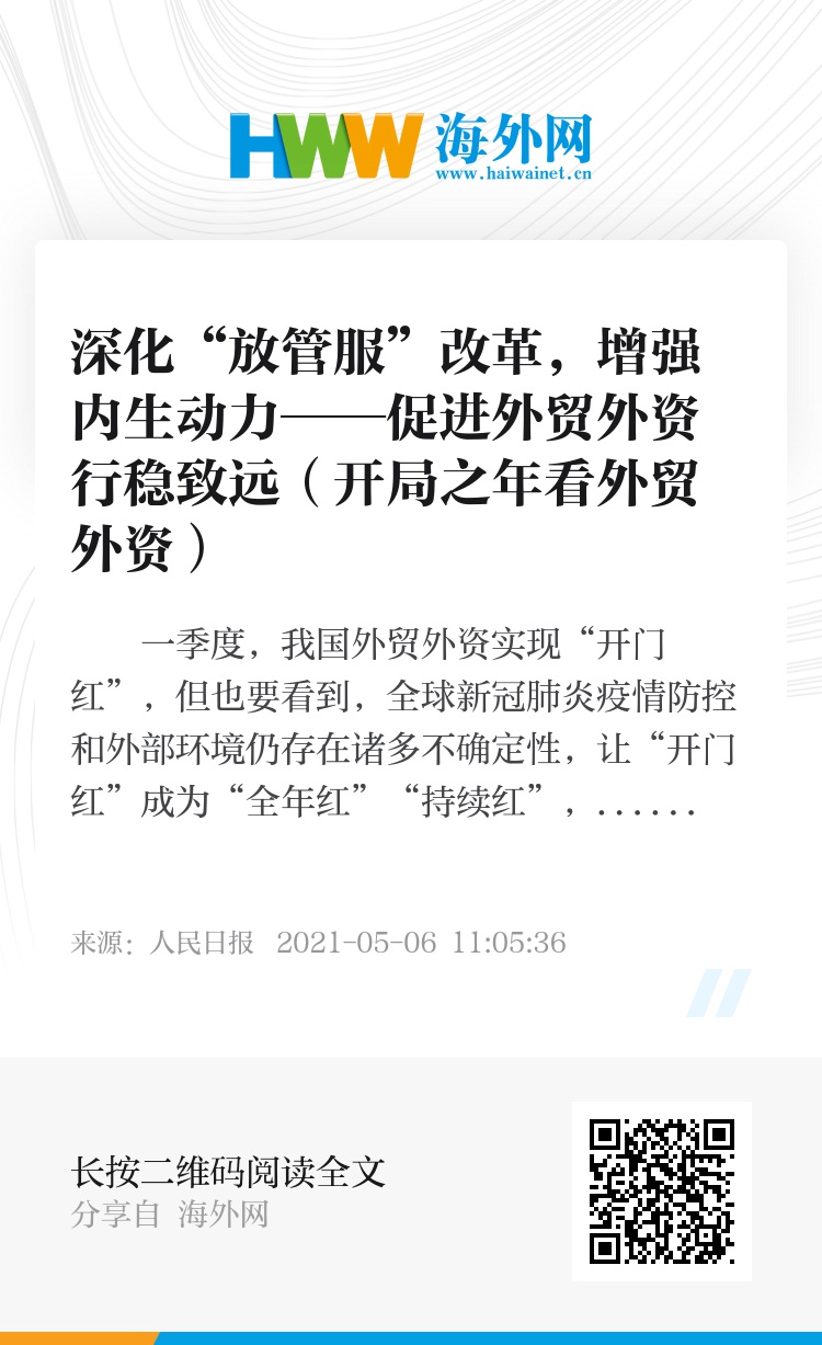 促进外贸外资稳中提质,就要深入推进新一轮高水平对外开放不停步,以深化“放管服”改革为抓手,为外贸外资企业提供更舒心的“软环境”。