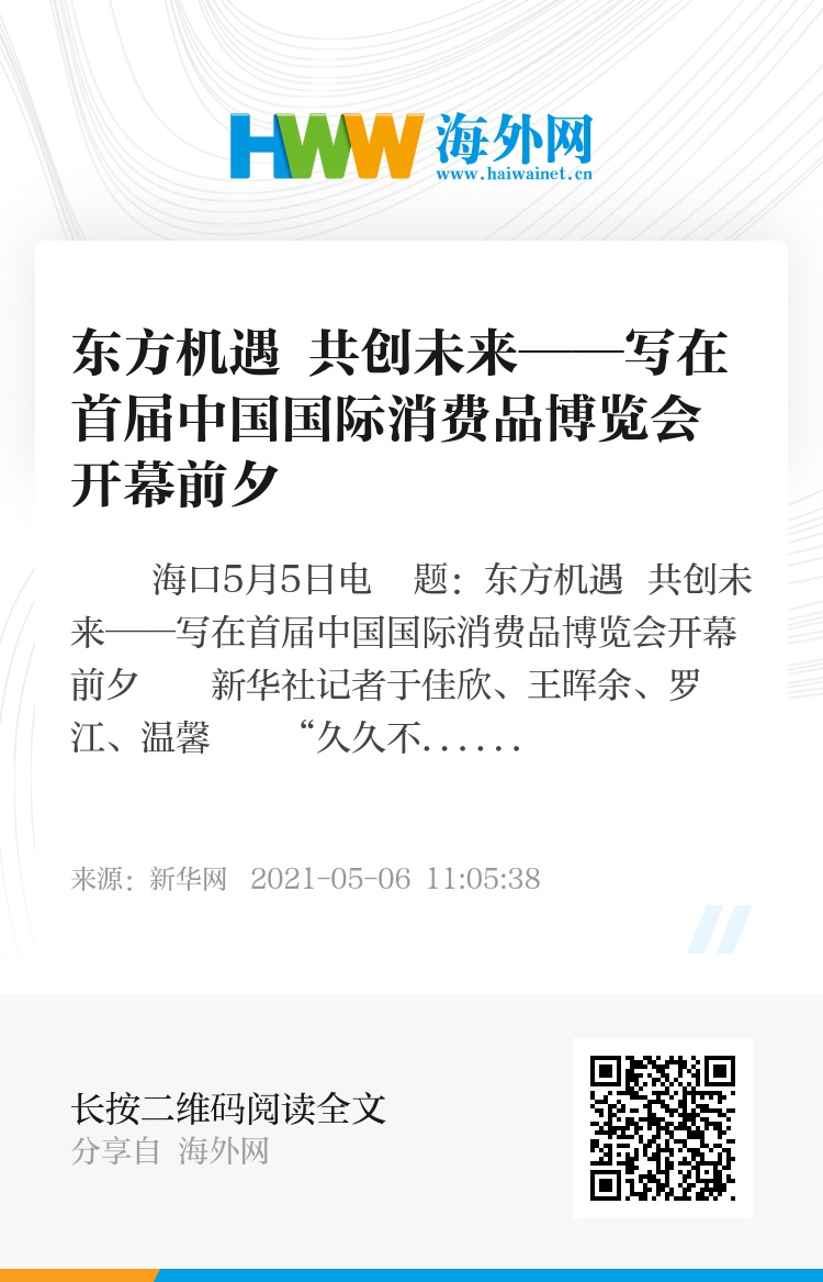 新华社海口5月5日电 题:东方机遇 共创未来——写在首届中国国际消费品博览会开幕前夕