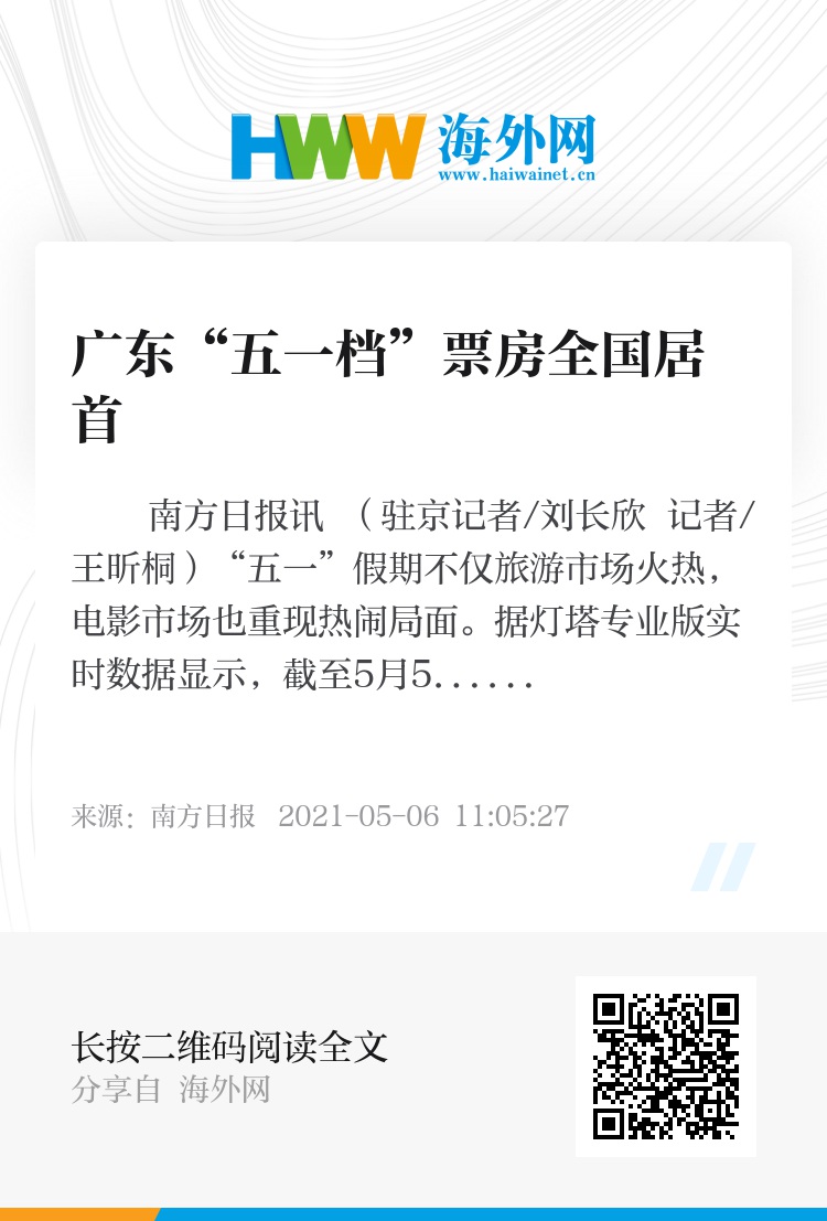 广东省作为全国重要票仓,在“五一档”依然以巨大优势位居榜首。其中,5月1日—4日,广东省累计票房超2.09亿元,全国占比14.28%,总场次超20.6万,观影总人次超535万。业内人士分析,广东在本档期继续保持全国榜首位置,一方面得益于我省对影院扶持政策的给力,以及对电影市场的规范管理。另一方面缘于广东作为经济、人口大省,电影受众群体广泛,且养成了较好的观影习惯。