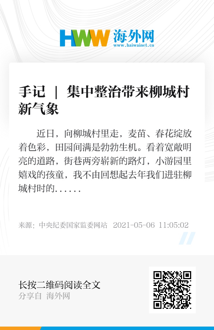 近日,向柳城村里走,麦苗、春花绽放着色彩,田园间满是勃勃生机。看着宽敞明亮的道路,街巷两旁崭新的路灯,小游园里嬉戏的孩童,我不由回想起去年我们进驻柳城村时的场景。