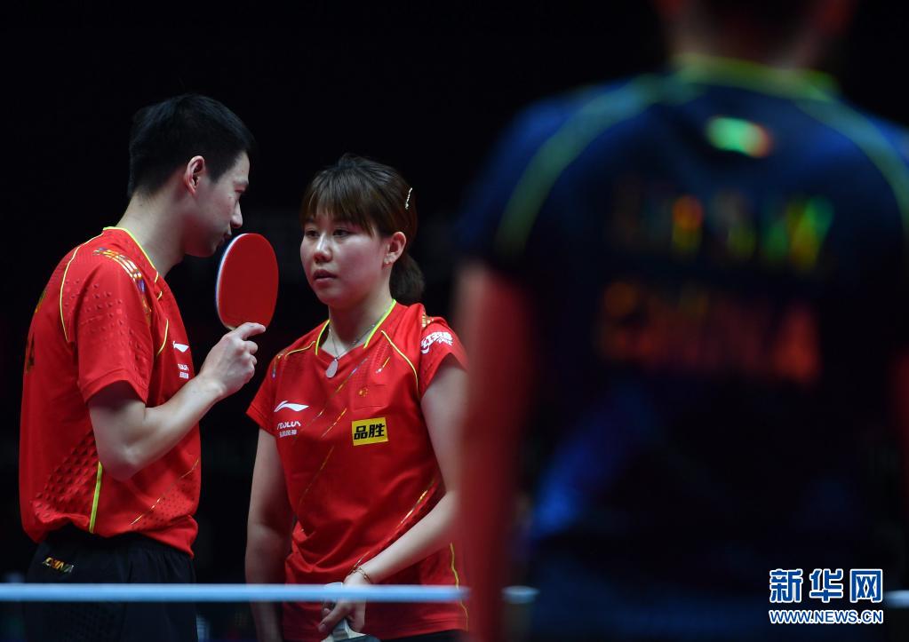 5月5日,许昕/刘诗雯(右)在比赛中。