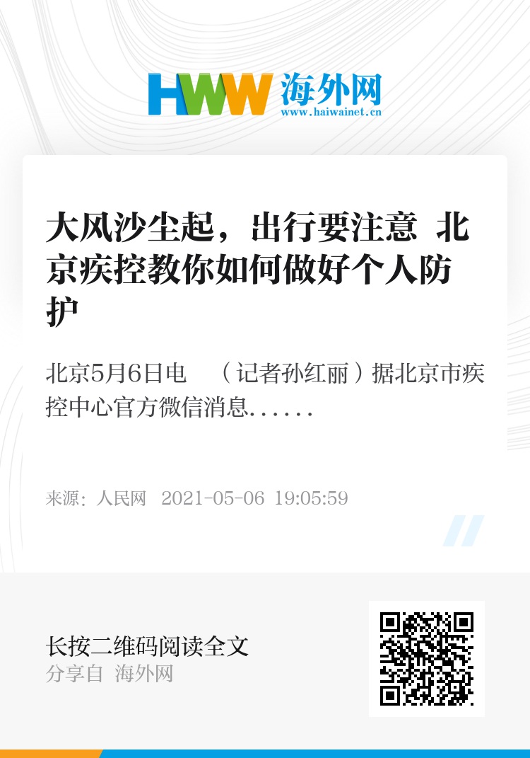 北京市疾控中心提醒,大风沙尘天气,行人出行要注意以下几点: