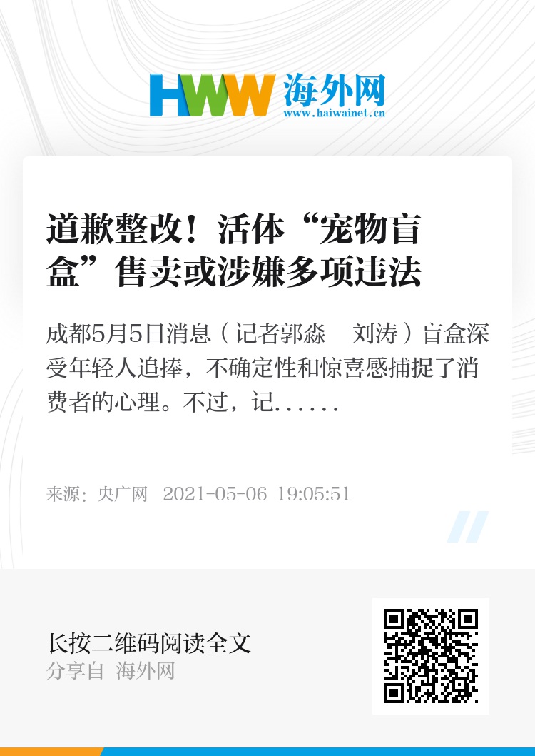 活体“宠物盲盒”售卖或涉嫌多项违法