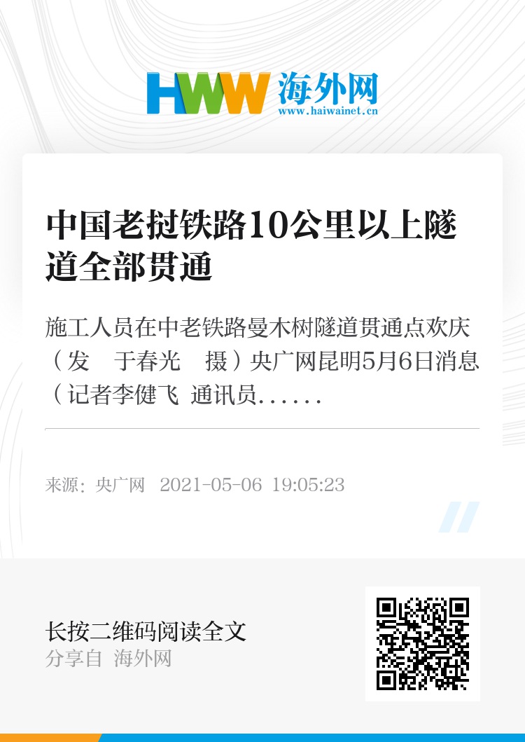 央广网昆明5月6日消息(记者李健飞 通讯员张伟明 于春光 王鹏)5月6日,记者从中国铁路昆明局集团获悉,经过建设者1700多天的昼夜奋战,中(国)老(挝)昆(明)万(象)铁路高风险控制性工程曼木树隧道安全贯通。至此,中老铁路10公里以上15座隧道全部贯通。