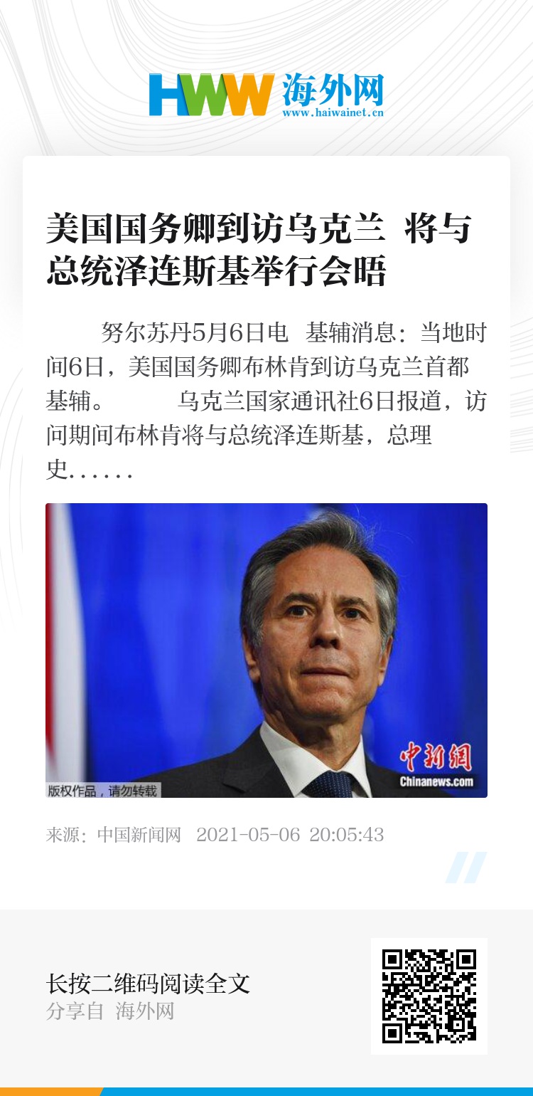 中新网努尔苏丹5月6日电 基辅消息:当地时间6日,美国国务卿布林肯到访乌克兰首都基辅。