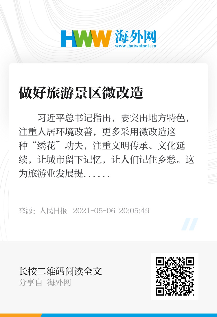 习近平总书记指出,要突出地方特色,注重人居环境改善,更多采用微改造这种“绣花”功夫,注重文明传承、文化延续,让城市留下记忆,让人们记住乡愁。这为旅游业发展提供了重要遵循。不断加强旅游业的微改造、精提升,既是当下提升游客体验的必要之举,也是旅游产业长远发展的重要前提。