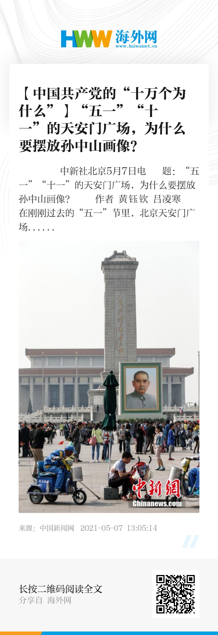 中新社北京5月7日电 题:“五一”“十一”的天安门广场,为什么要摆放孙中山画像?