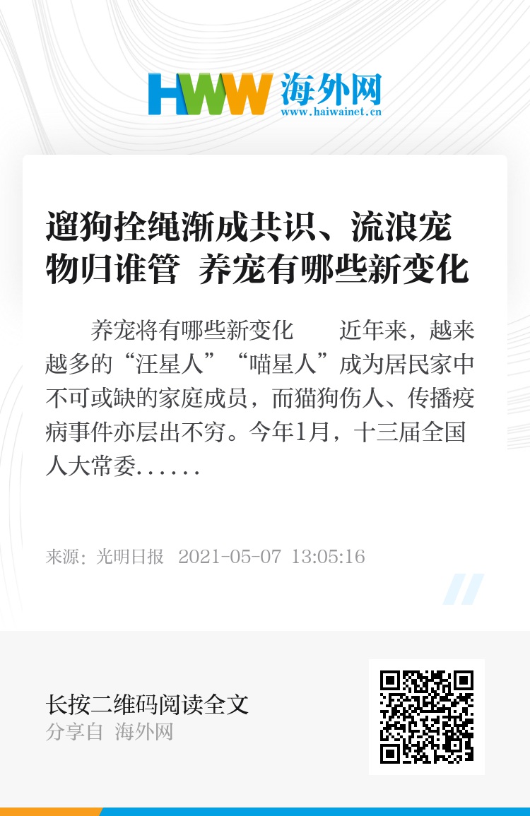 近年来,越来越多的“汪星人”“喵星人”成为居民家中不可或缺的家庭成员,而猫狗伤人、传播疫病事件亦层出不穷。今年1月,十三届全国人大常委会第二十五次会议表决通过了新修订的动物防疫法,新法回应社会关切的猫犬管理等问题。5月1日起,新修订的动物防疫法正式施行,养宠将有哪些新变化?本报记者进行了采访。