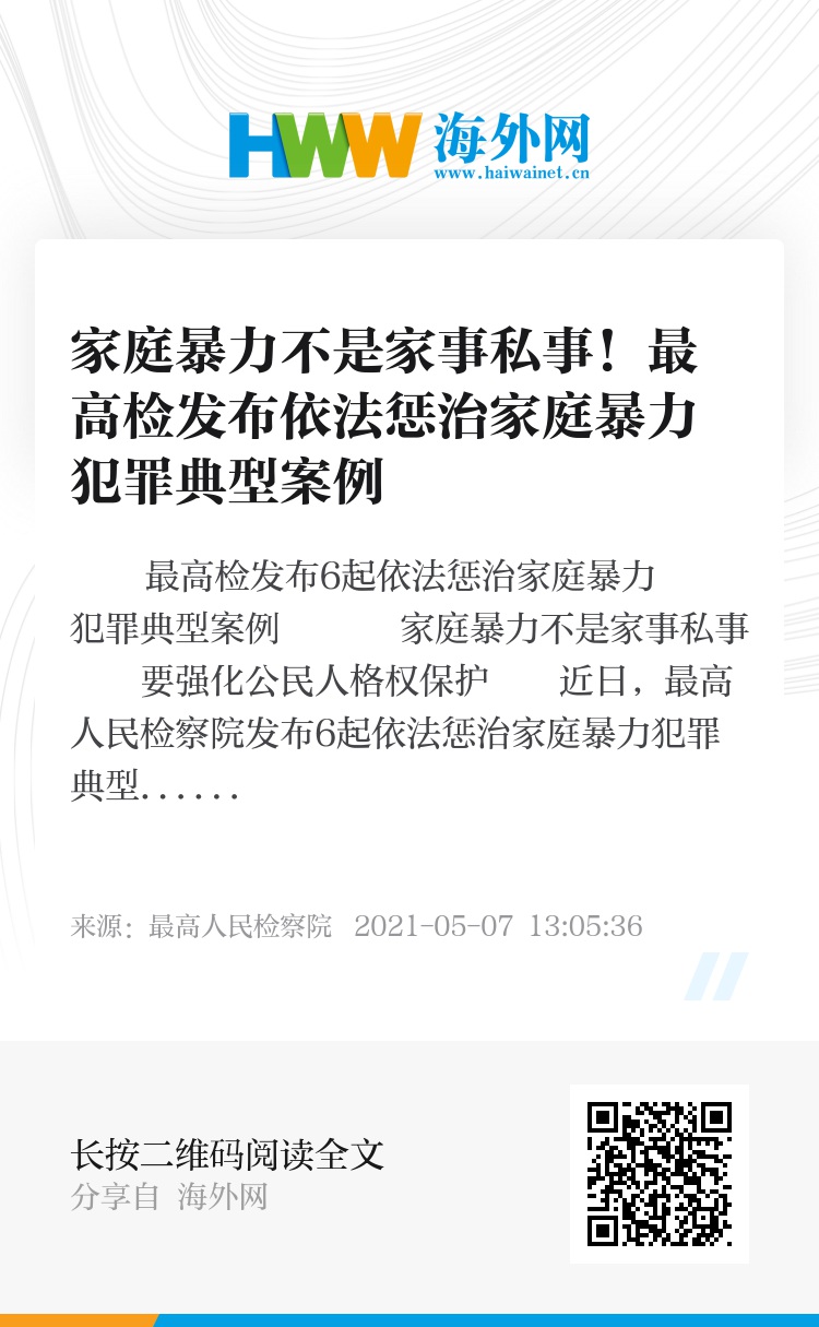 最高检发布6起依法惩治家庭暴力