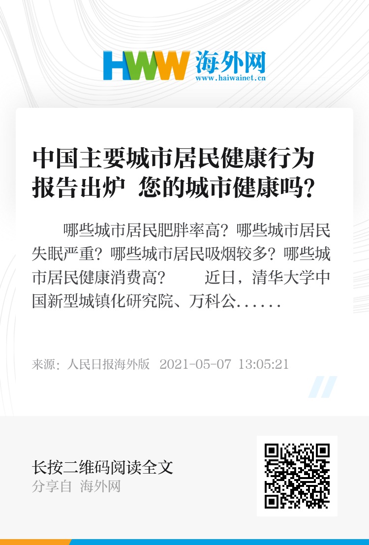 近日,清华大学中国新型城镇化研究院、万科公共卫生与健康学院、国家治理与全球治理研究院联合举办“倡导文明健康生活方式,促进城市健康发展”论坛,并发布基于城市维度的居民健康行为大数据综合评价报告——《清华城市健康行为指数》。