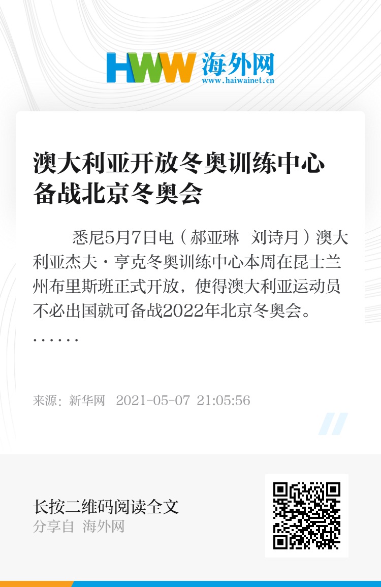 新华社悉尼5月7日电(郝亚琳 刘诗月)澳大利亚杰夫·亨克冬奥训练中心本周在昆士兰州布里斯班正式开放,使得澳大利亚运动员不必出国就可备战2022年北京冬奥会。