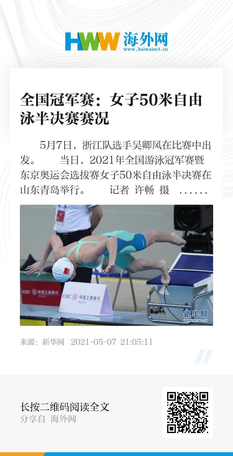 当日,2021年全国游泳冠军赛暨东京奥运会选拔赛女子50米自由泳半决赛在山东青岛举行。