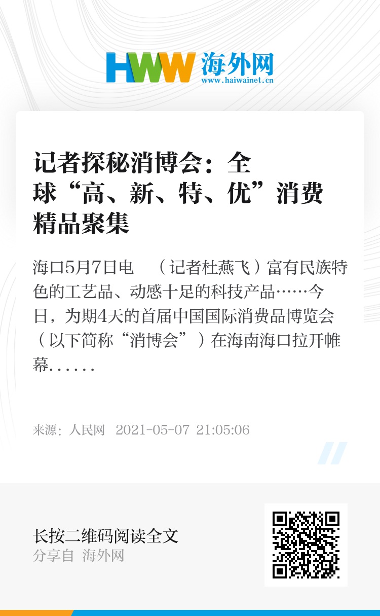 人民网海口5月7日电 (记者杜燕飞)富有民族特色的工艺品、动感十足的科技产品……今日,为期4天的首届中国国际消费品博览会(以下简称“消博会”)在海南海口拉开帷幕,吸引国内外采购商和专业观众超3万人,观众超20万人次,有望成为亚太地区规模最大的国际精品展。