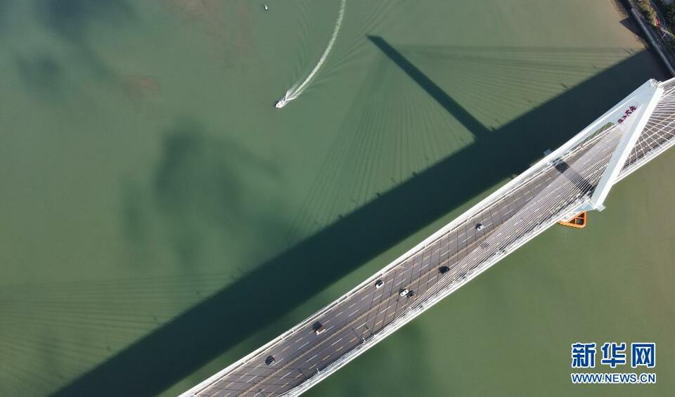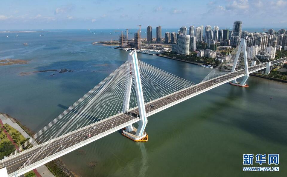 这是5月3日拍摄的海口世纪大桥(无人机照片)。新华社记者 杨冠宇 摄