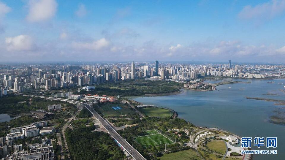 这是5月3日拍摄的海口市区风光(无人机照片)。新华社记者 杨冠宇 摄