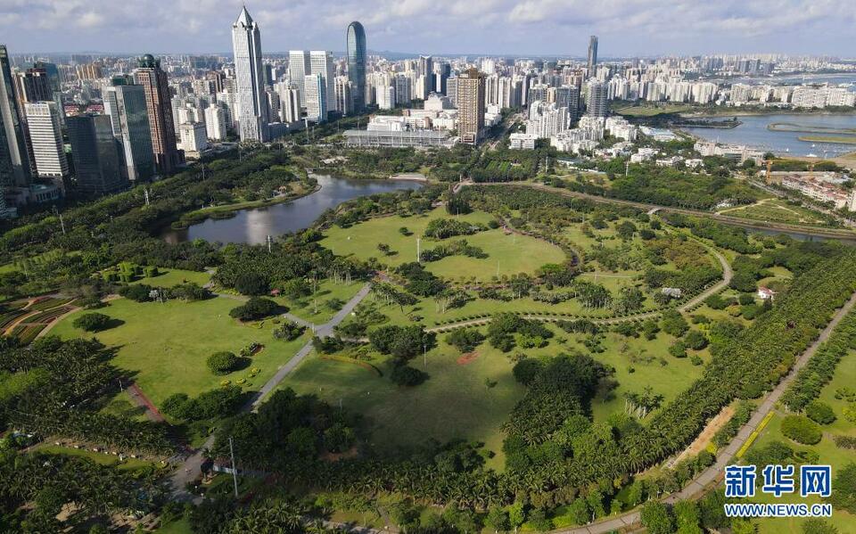 这是5月3日拍摄的海口市万绿园(无人机照片)。新华社记者 杨冠宇 摄