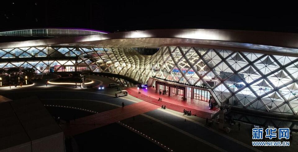 这是夜色下的首届消博会举办地海南国际会展中心(5月4日摄,无人机照片)。新华社记者 杨冠宇 摄