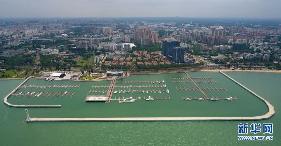 这是4月30日拍摄的海口国家帆船基地公共码头,首届消博会游艇展将在这里举行(无人机照片)。新华社记者 杨冠宇 摄