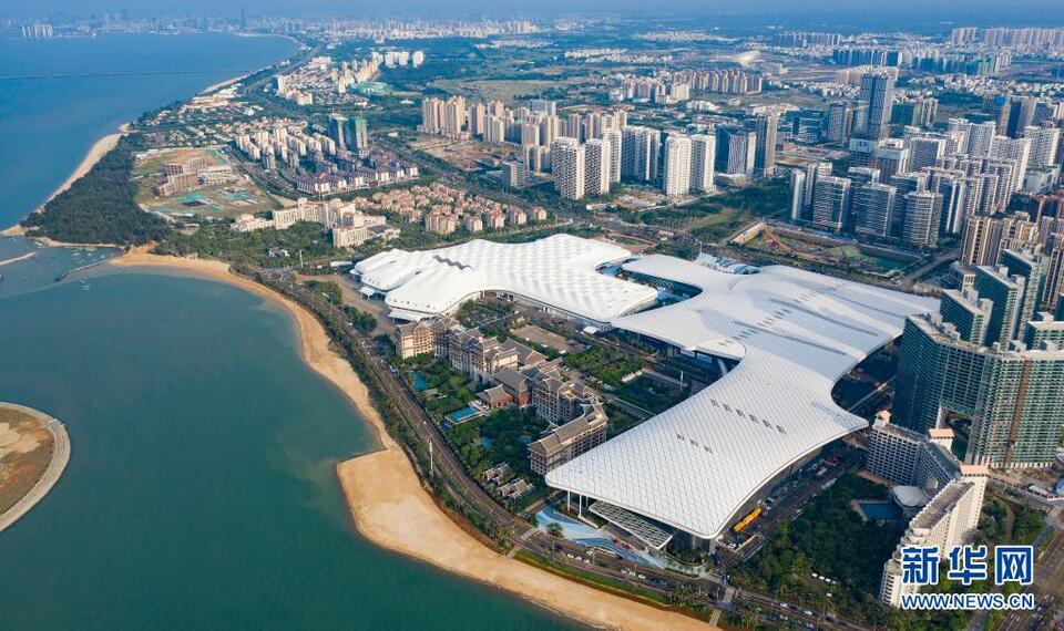 这是首届消博会举办地海南国际会展中心(4月30日摄,无人机照片)。新华社记者 郭程 摄
