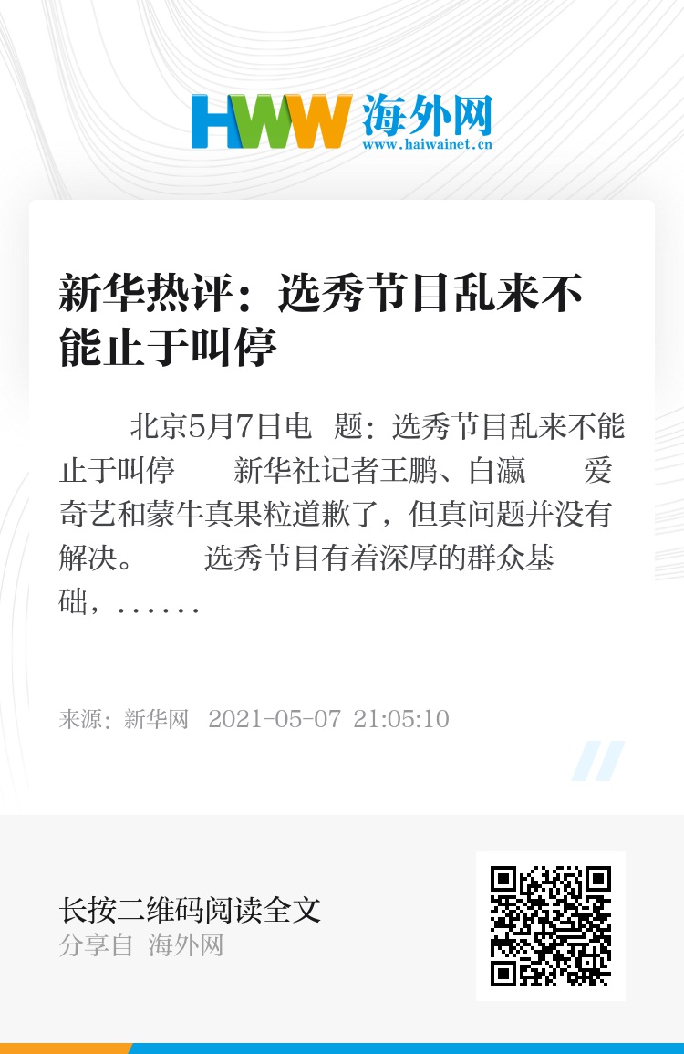 新华社北京5月7日电 题:选秀节目乱来不能止于叫停