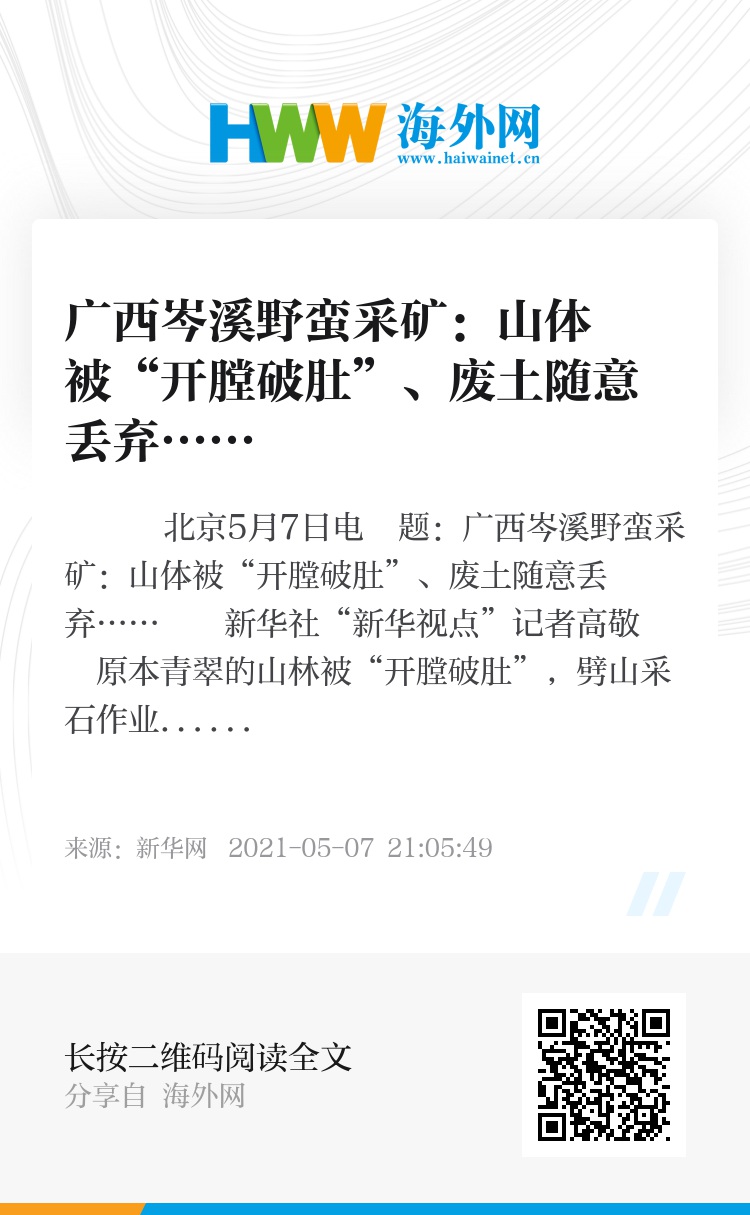 新华社北京5月7日电 题:广西岑溪野蛮采矿:山体被“开膛破肚”、废土随意丢弃……