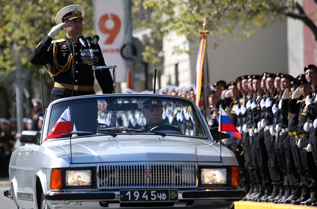 当地时间5月7日,克里米亚塞瓦斯托波尔举行纪念卫国战争胜利76周年阅兵式彩排。图片来源:人民视觉