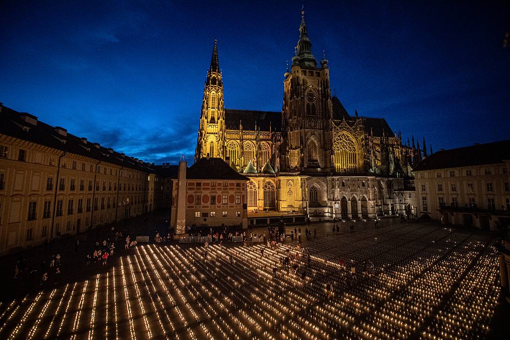 捷克布拉格城堡前摆放大量蜡烛 悼念新冠死者