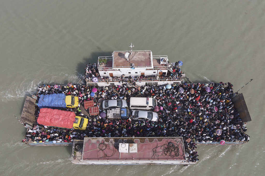 开斋节将至 孟加拉国大批民众登超载渡轮返乡