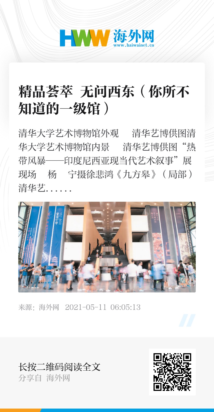 从典雅华美的丝绸瓷器到纹饰多样的古代铜镜,从热情奔放的印尼艺术作品到充满童趣的西方插画——沿着贯通一至四层的宽阔楼梯拾级而上,如同在跨越时空的艺术长廊里穿行,来自不同文明的艺术瑰宝尽收眼底。这座荟萃多元文化的艺术殿堂,便是坐落在大学里的国家一级博物馆——清华大学艺术博物馆。