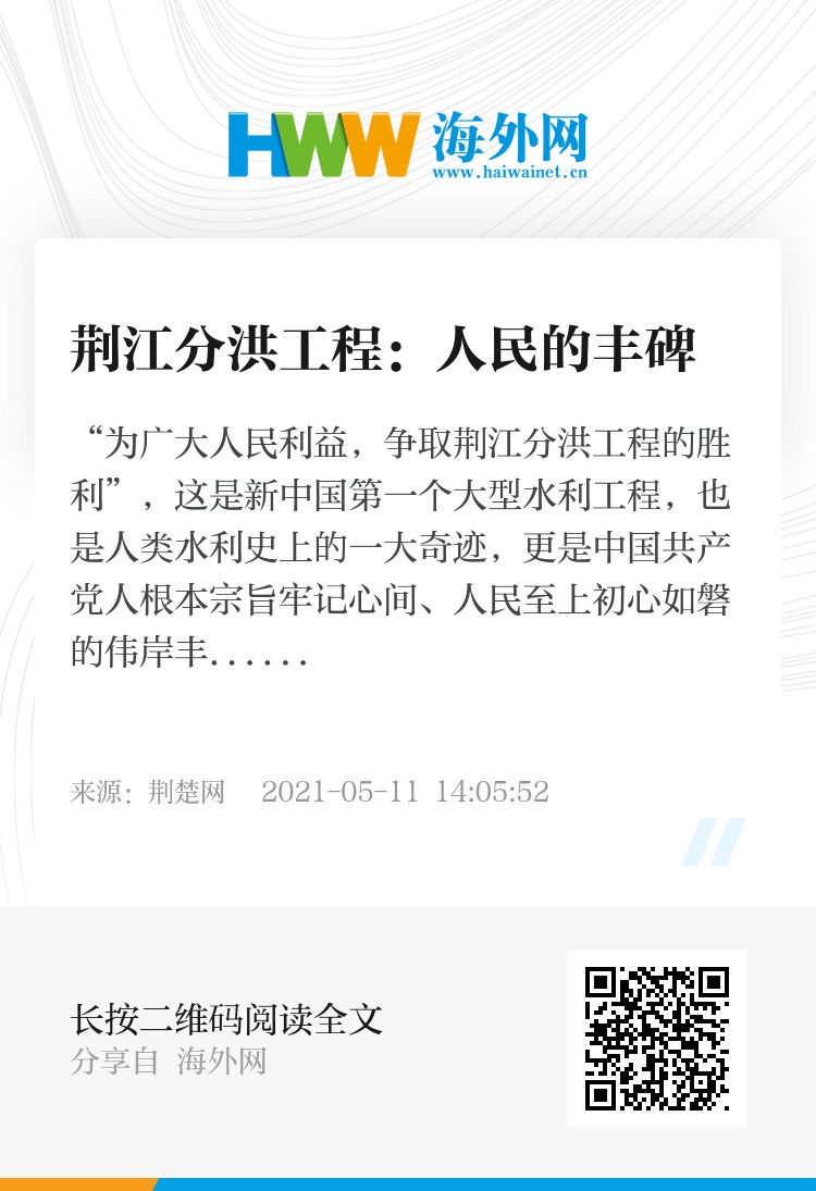 这是一切为了人民的丰碑。万里长江,险在荆江。荆江江段蜿蜒曲折,素称“九曲回肠”,是长江水患最严重的地方。据史料记载,1949年前的300多年间,荆江大堤溃决过34次,到了近代,大约每5到6年就发生一次大洪水,两岸流传“荆沙不怕刀兵动,只怕南柯一梦中”的民谣,可见人民受害之深。新中国成立后,为缓解长江水患,使江湖对人民有利,国家决定兴建荆江分洪工程,毛泽东亲自审阅批准建设计划。1952年3月15日作出《关于荆江分洪工程的决定》,成立以李先念为主任的荆江分洪委员会。4月5日,工程全面动工,分主体工程、辅助工程两期施工。6月20日,完成主体工程,创造了世界水利史上的施工奇迹,荆江河道安全泄洪能力得到显著提高。