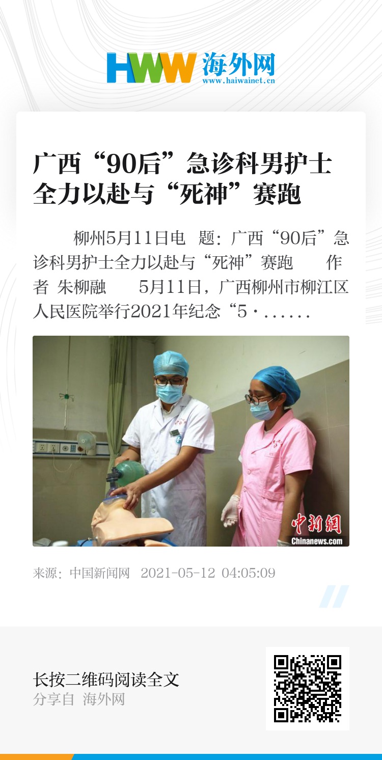 中新网柳州5月11日电 题:广西“90后”急诊科男护士全力以赴与“死神”赛跑